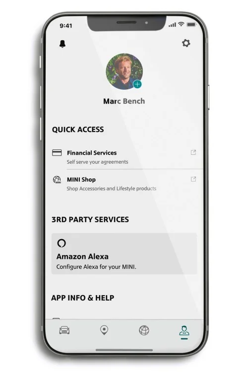 La MINI App mejora tu conexión con el mundo digital sin que pierdas el control en ningún momento, tanto dentro como fuera de tu MINI. La información y los ajustes relevantes de tu página de perfil hacen que la conducción resulte aún más sencilla.