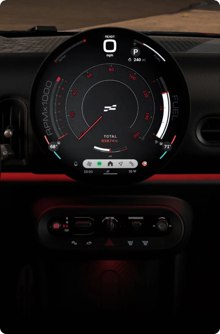 Cambia entre los modos de experiencia MINI como si fueran marchas. Desde Go-Kart hasta Green, hay hasta ocho modos de experiencia únicos listos para elevar cada viaje.