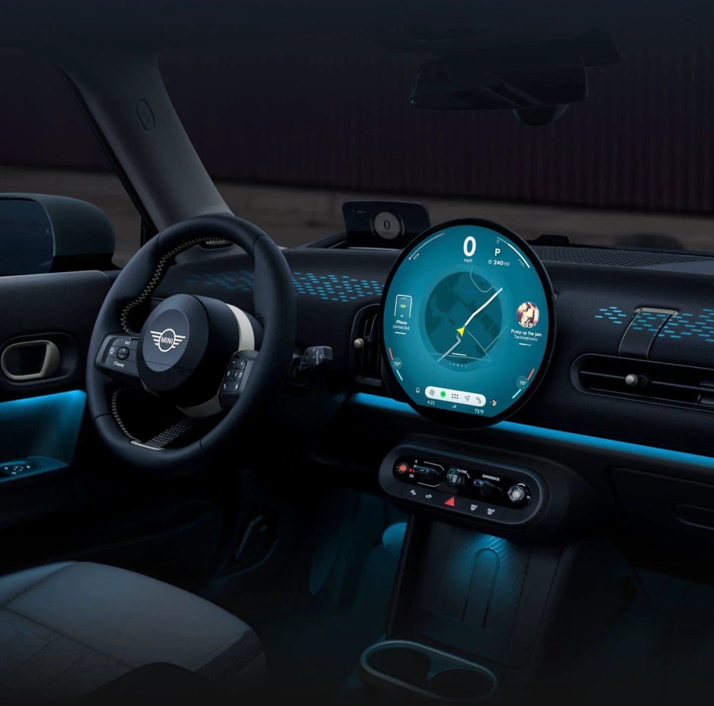 Con la primera pantalla OLED circular de 9,4 pulgadas del sector y la MINI Toggle Bar como elemento central, todo lo que necesitas, desde el control de volumen hasta los modos de experiencia MINI, está al alcance de tu mano.
