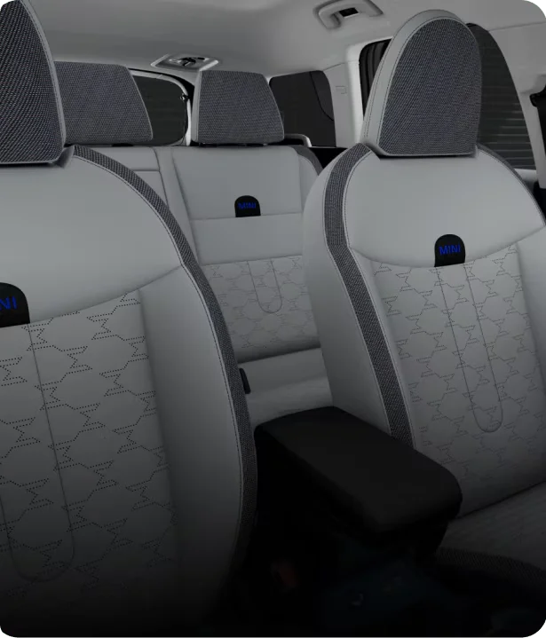 Los asientos deportivos de serie, tapizados en Vescin sin cuero y tela, convierten al Countryman SE ALL4 en una opción ecológica en más de un sentido.